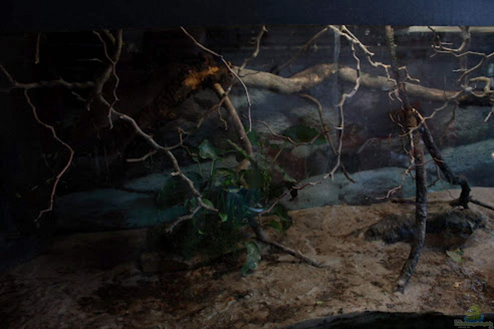 Von oben hereinragende ´Wurzeln´ und Aeste. Am Boden dezente Struktur durch zwei gro??e Steine und zwei Wurzeln.