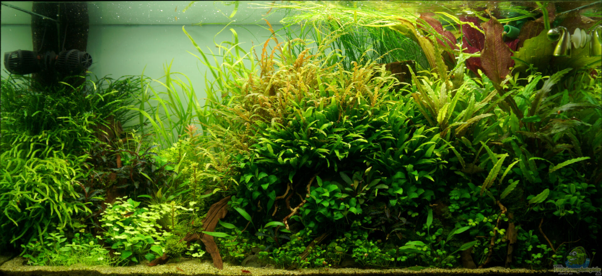 Das Aquarium ist vor allem ein Pflanzenbecken ohne gro??e Besonderheiten. Das Becken selbst ist ein über 15 Jahre altes Juwel-Standardbecken mit Längsstreben. An der Rückwand wurde eine selbstklebende Milchglasfolie aus dem Baumarkt angebracht.