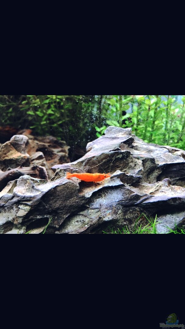 Wie in der Beschreibung beschrieben: Orange Sakura, Orange Rili, Goldene Tigergarnele und 3 Endler Guppys(Männlich) und paar Renn und Geweihschnecken und Amanogarnelen.