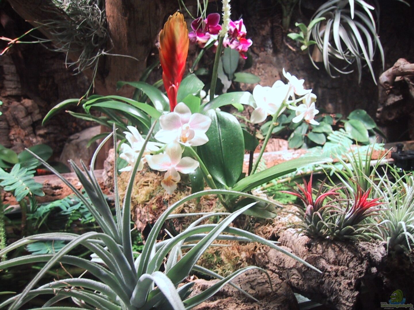 Submers: - Echinodorus parviflorus - verschiedene Cryptocorynen - Vallisneria gigantea - Aponogeton crispus - Aponogeton longiplumulosus - Tigerlotus - Javamoos - Anubias Emers: Orchideen: - Barkeria Hybride (spectabilis x cyclotella) - Trichoglottis philippinensis var. brachiata - Trichoglottis putida - Phalaenopsis parishii lobbii - Ascocentrum ampullaceum `Red´ - Diplopora truncata - Cattleya Red-Doll - Haraella odorata - Pomatocalpa spicata - [...]