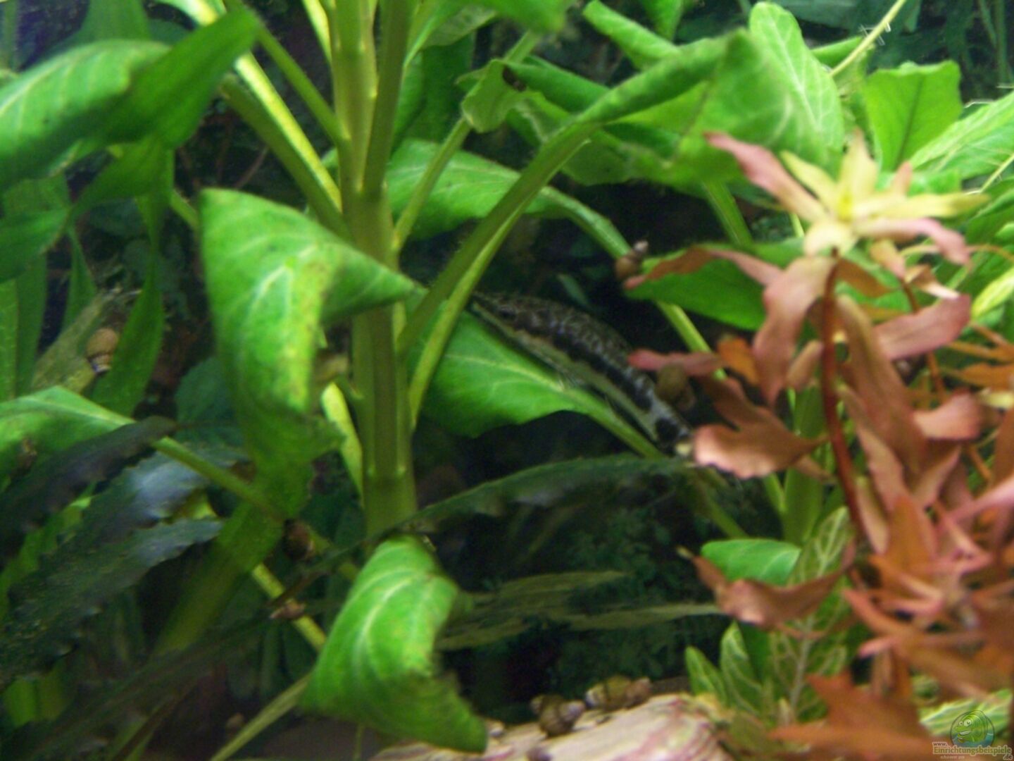4 Segelflosser (Pterophyllum scalare) 8 Blaue Kongosalmler (4 M/4W) 5 Schmucksalmler (Hyphessobrycon bentosi bentosi) Rest von ursprünglich 10 6 Welse (ein Pärchen L 144, ein Pärchen braune Antennenwelse, zwei Panaquolus maccus) 7 Panzerwelse (vier Panda-Panzerwelse, drei Schachbrettpanzerwelse) 2 Maroni-Buntbarsche (ein Pärchen) 2 Borellis Zwergbuntbarsche (ein Pärchen) 3 Netzschmerlen (Botia lohachata) Au??erdem sind noch vier blaue Neons, zwei Feuersalmler, drei Kardinalfische, [...]