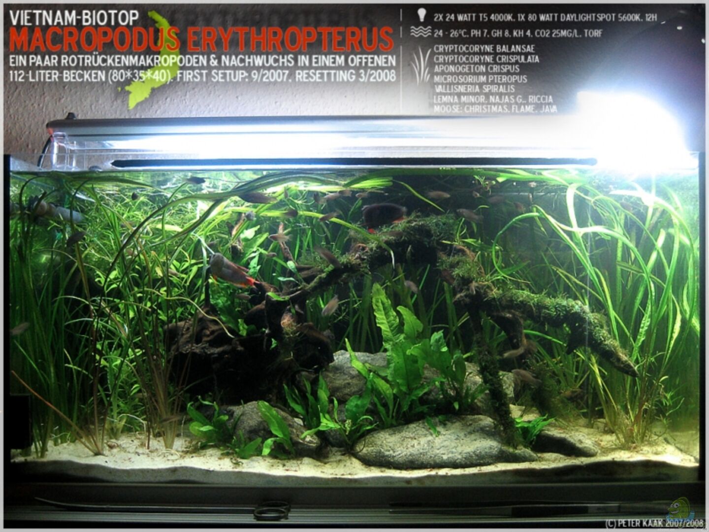 # Vietnam-Biotop / Artenbecken (Macropodus erythropterus) # Offenes Becken mit minimaler Technik # Offene Unterkonstruktion aus Ytongsteinen und wei??em Marmorkies als Deko