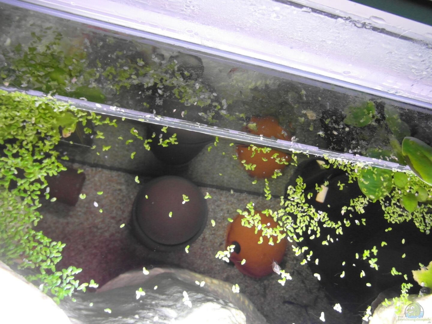 Hinterschwimm, kriech- und krabbelbare Rückwand, welche an den unteren und seitlichen Kanten nur punktuell mit JBL Haru verklebt wurde. Das Wasser kann somit u.a. durch die entstandenen "Verklebelücken" zirkulieren. Darüber hinaus ist der hintere Bereich der Rückwand durch einen 7 x 5 cm gro??en Durchgang zugänglich, welcher sich im linken unteren Bereich befindet. Auch hier gelangt Wasser hinter die Rückwand um einem Stillstand des Wassers entgegen zu wirken.