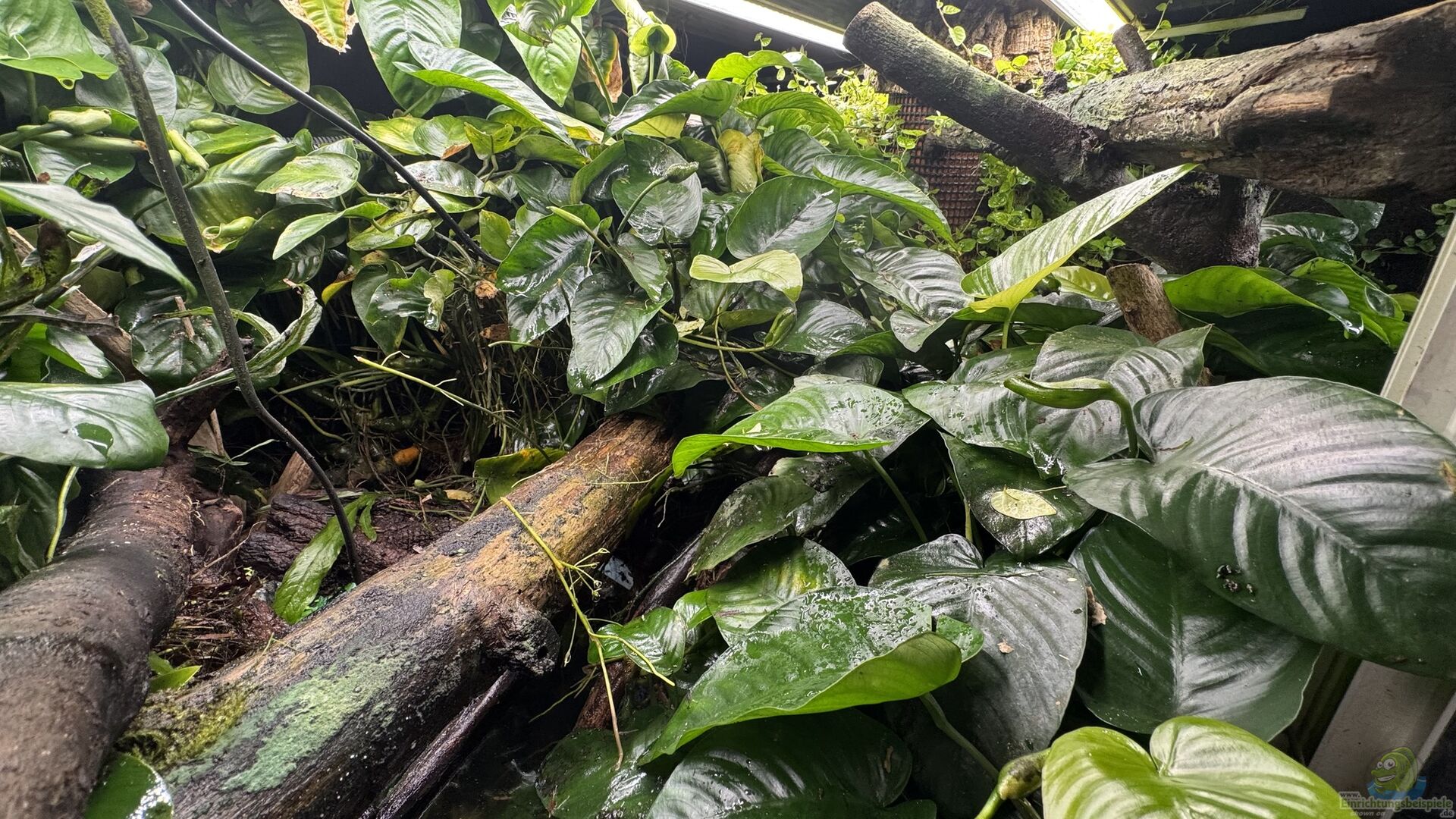 Die Gesamtlänge verteilt sich auf zwei rechtwinklig angeordnete Schenkel von 300cm und 160cm. Der Unterbau ist ein Stahlgestell mit Einbauteilen aus dem Küchenbau. Es geht mir darum ein grundsätzlich pflegeleichtes "urkaubsfestes" Aquarium zu haben. Im Paludarium leben sechs Frösche Amnirana Gakamensis, zu deutsch Galam Weißlippenfrasch. Eigentlich hätte ich Baumsteiger/Pfeilgiftfrösche bevorzugt, aber die sind nicht schwimmfähig, also für das Paludarium nicht geeignet, außerdem [...]