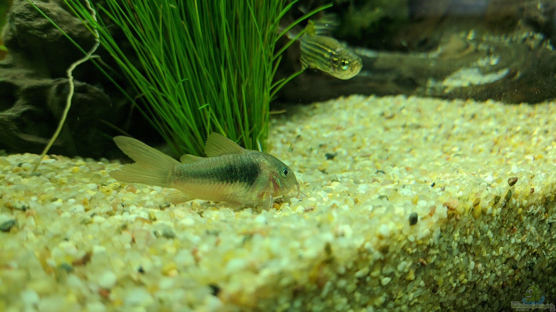 Besatz: -12 Kupfersalmler (Hasemania nana) -5 Guppies (Poecilia reticulata) 2M/3W ; werden noch mehr ;) -10 Metallpanzerwelse (Corydoras aeneus) -2 Zebrabärblinge (Danio rerio) (Restbesatz altes Becken)
