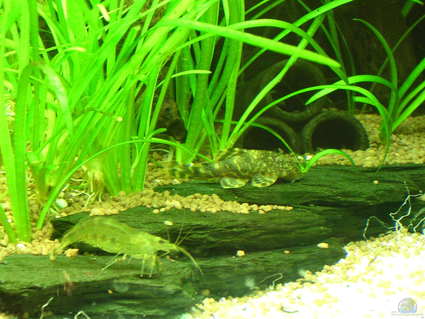 Stand 05.04.2015: 1m Apistogramma agasizii (agasiziis Zwergbuntbarsch); "Charly" zur Zeit alleine 3 L103 Pecoltia spec. ca. 8 Caridina vaponica (Amano-Garnelen) ca. 11 Otocinclus macrospilus (Ohrgitterharnischwels); "Die Horde" ca. 30 Paracheirodon axelroid (Roter Neon); "Der Schwarm" noch 2 Carnegiella strigata fasciata (Marmorierter Beilbauch); werden nicht mehr aufgefüllt. 5 Crossocheilus siamensis (Siamesische Rüsselbarbe); "Der Trupp"; [...]