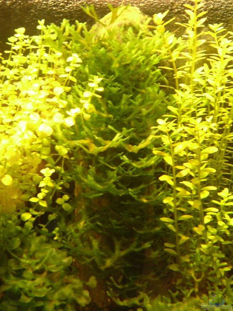 Versteinertes Holz, auf dem pellia aufgebunden ist Kleiner Lavabrocken auf dem das X-mas-Moos wächst. lavabrocken, die im ganzen becken auftreten und mit verschiedensten pflanzen bewachsen sind (riccia rhenana, Hemianthus callitrichoides Cuba, pogostemon helferi, glossostigma elastinoides, pella, süwassertang) einige blätter (buche und eiche), um häutungsprobleme vorzubeugen!