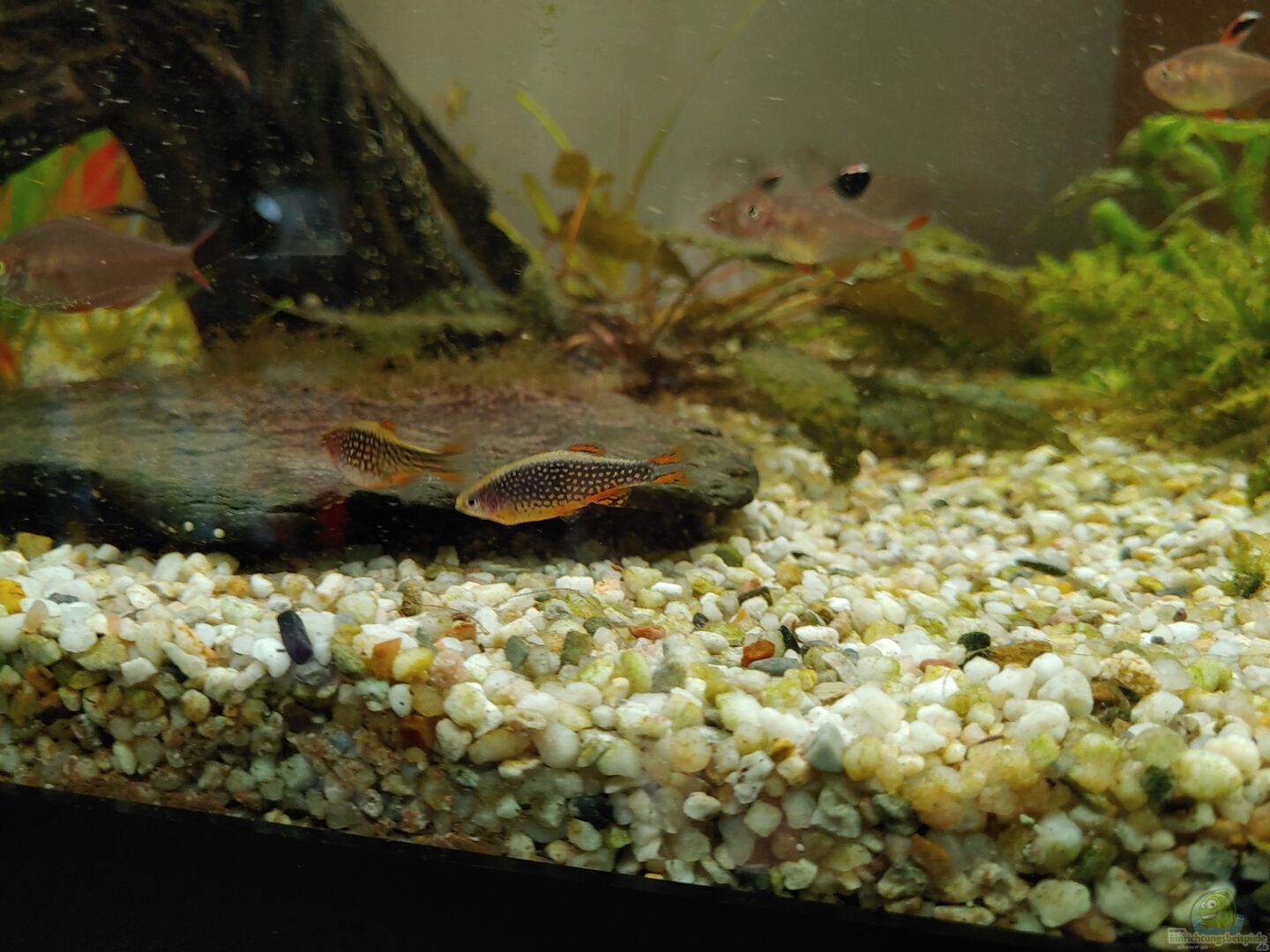 - 10 Zebrabärblinge (unsere "Versuchskaninchen und Starter-Fische") - Stand 2022: 7 Zebra-und Leopardbärblinge (tw. Schleiherform) - 6 Schmucksalmler (Hyphessobrycon rosaceus) - Stand 2022: 7 Schmucksalmler (Schwarz-und Wei??spitzen) - 2 Hexenwelse (Rineloricaria fallax) - Stand Sep 2022: 1 Hexenwels "Thelma" - 7-10 Garnelen-rot (Neocaridina davidi) + X-Babys - Stand 2022: 3 sichtbare rote Garnelen (+ X) - 2 Goldene Honig-Guramis (Colisa chuna) - Stand 2022: [...]