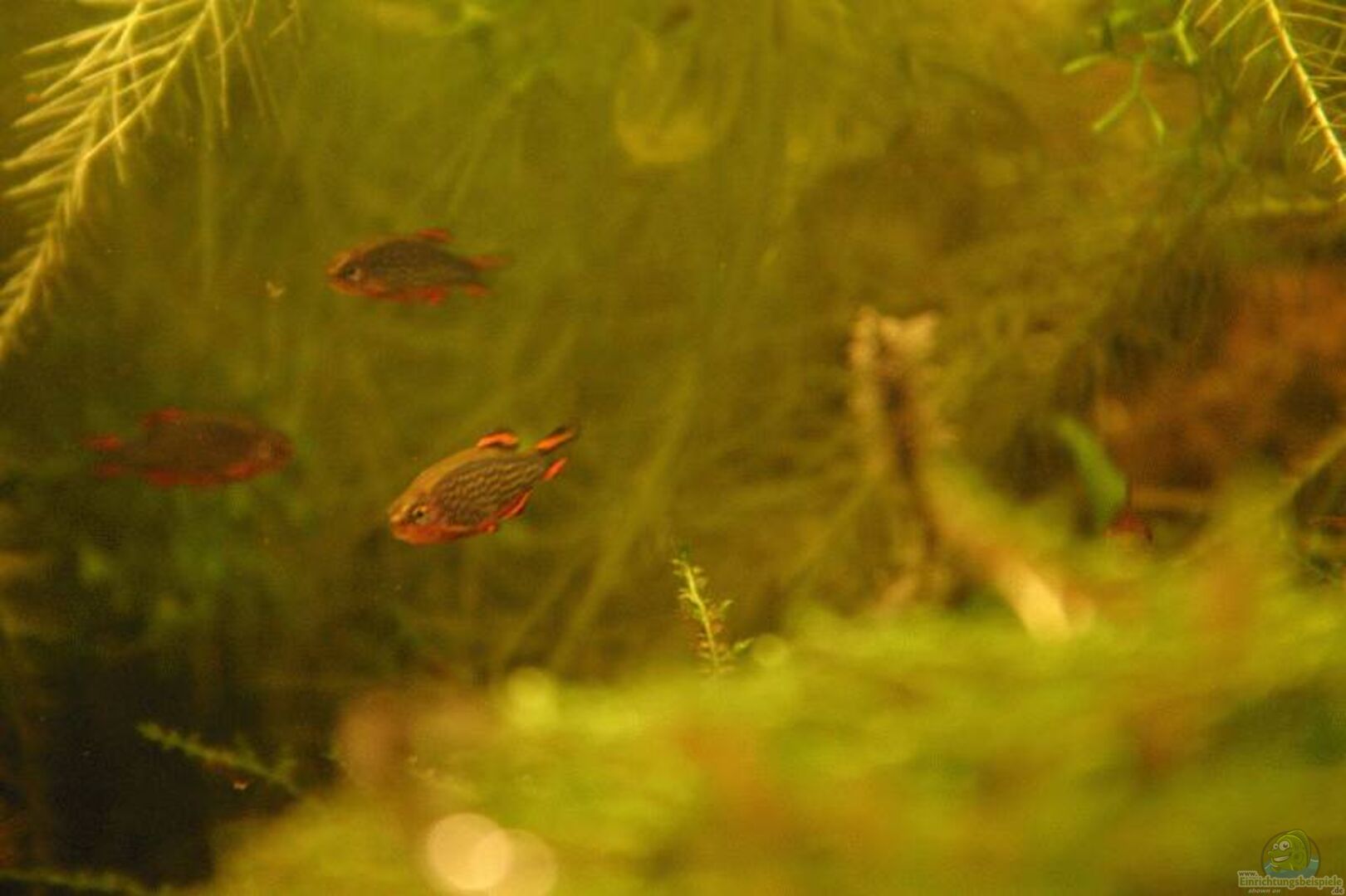 10 -12 Sterbai Panzerwelse (gekaufte plus eigene Nachzucht) jeweils Endgrö??e 6-7 cm, 23 Rotkopfsalmler 3, 5-5 cm 2 rote Hexenwelse 10-15 cm, 1 Zwergzierbindenwels 7 cm, 1 Otocinclus 4 cm, 10-12 Funkensalmler 3 cm ca. 15 Amanogarnelen ca 100 Skura sowie 3 schwarz-wei?? gestreifte L-Welse plus Nachwuchs 3 schwarre L-Welse mit wei??en Punkten plzus Nachwuchs 2 Goldbartwelse Nachwuchs ist in diesem Becken durchgekommen.