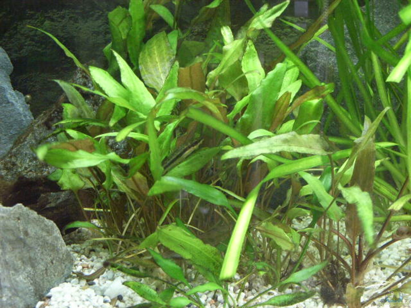 Vallesneria, Cryptocoryne (Wassekelch-Arten) Echinodorus parviflorus (vone rechs), Perlkraut (hinten rechts), Javafern, Javamoos, Teichlebermoos, Flammoos