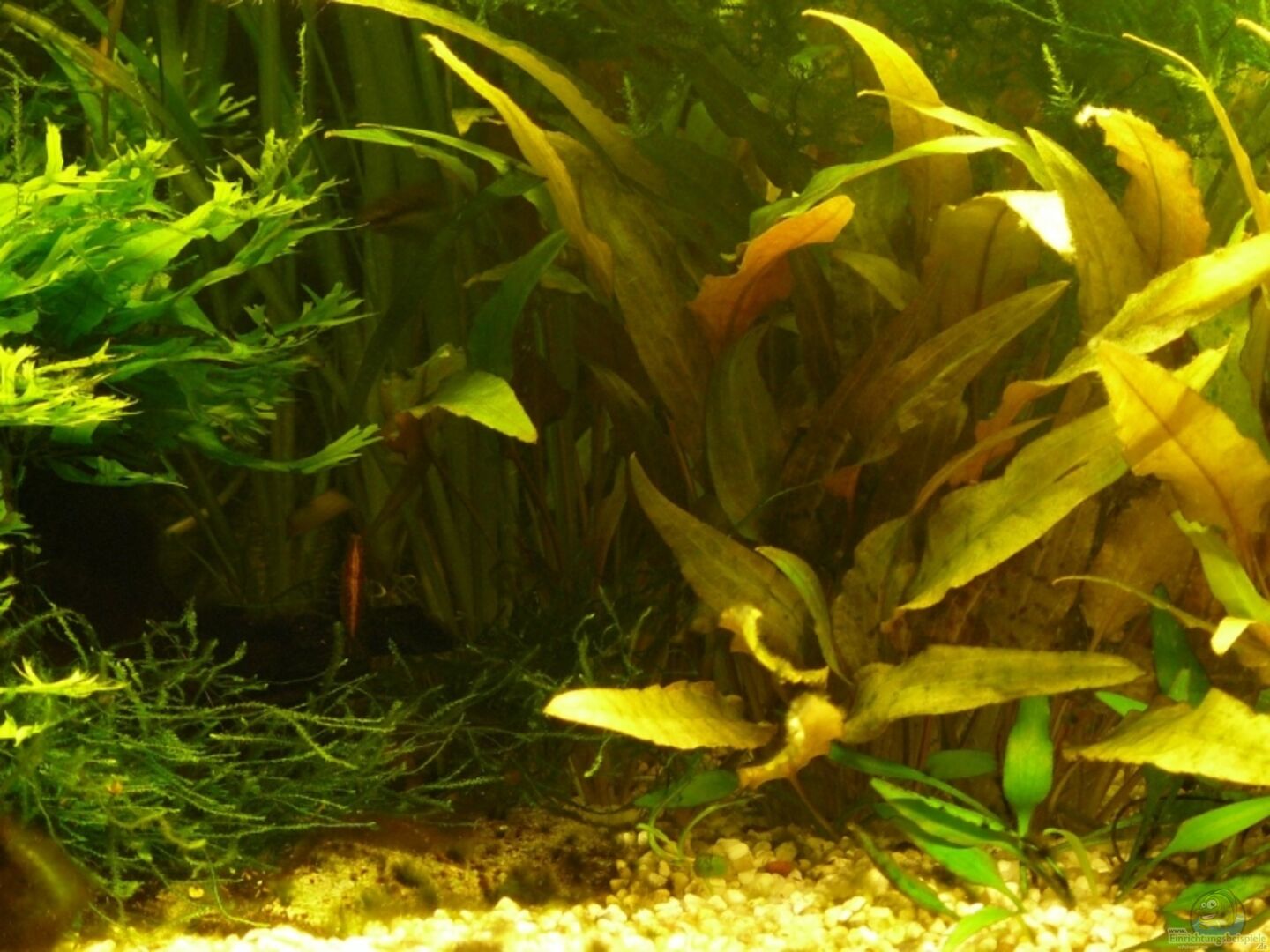Vallesneria, Cryptocoryne (Wassekelch-Arten) Echinodorus parviflorus (vone rechs), Perlkraut (hinten rechts), Javafern, Javamoos, Teichlebermoos, Flammoos