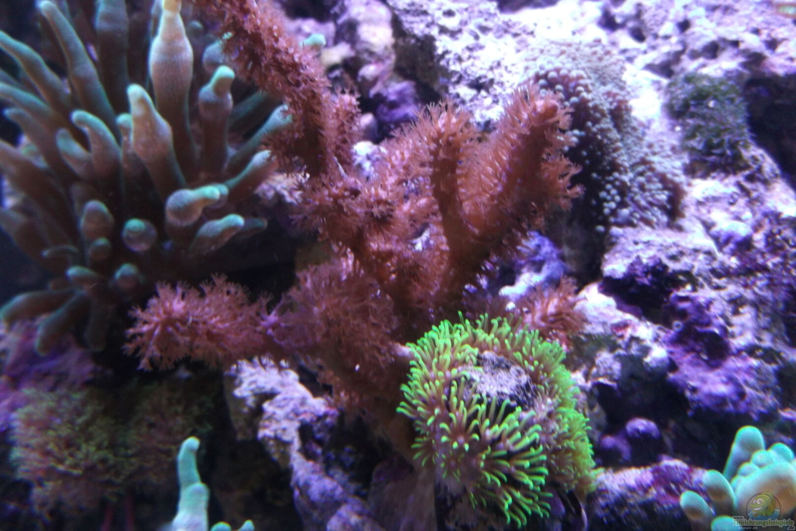 1x Stylophora Milka 1x Galaxea fascicularis-Kristallkoralle 2x Briareum hamrum - Grüne Röhrenkoralle 3x Entacmaea Quadricolor grün -hat sich gerade geteilt Keniabäumchen Ricordea yuma-grün 1x Gorgonie- unbekannte art 1x Actinia equina 1x Pilzlederkoralle mit langen grünen polypen