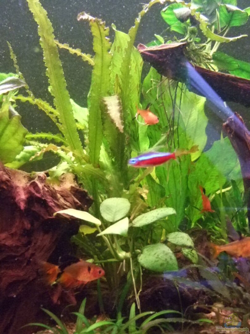 3x Cryptocoryne parva 3x Vallisneria 1x Aponogeton ulvaceus 1x Echindorus magdalensis 1x Echinodorus ´Red Flame´ 1x Cinum natans 1x Anubia 1x Cryptocoryne petchii 1x Anabias barteri 1x Hydrocotyle leucocephala N 1x Alternanthera rosaefolia 1x Tiegerlotus und 2 andere Echindorusarten so wie ein paar andere Pflanzen wo ich leider die Namen nicht wei?? sind vom alten Becken (150l) ins neu eingesetzt wurden