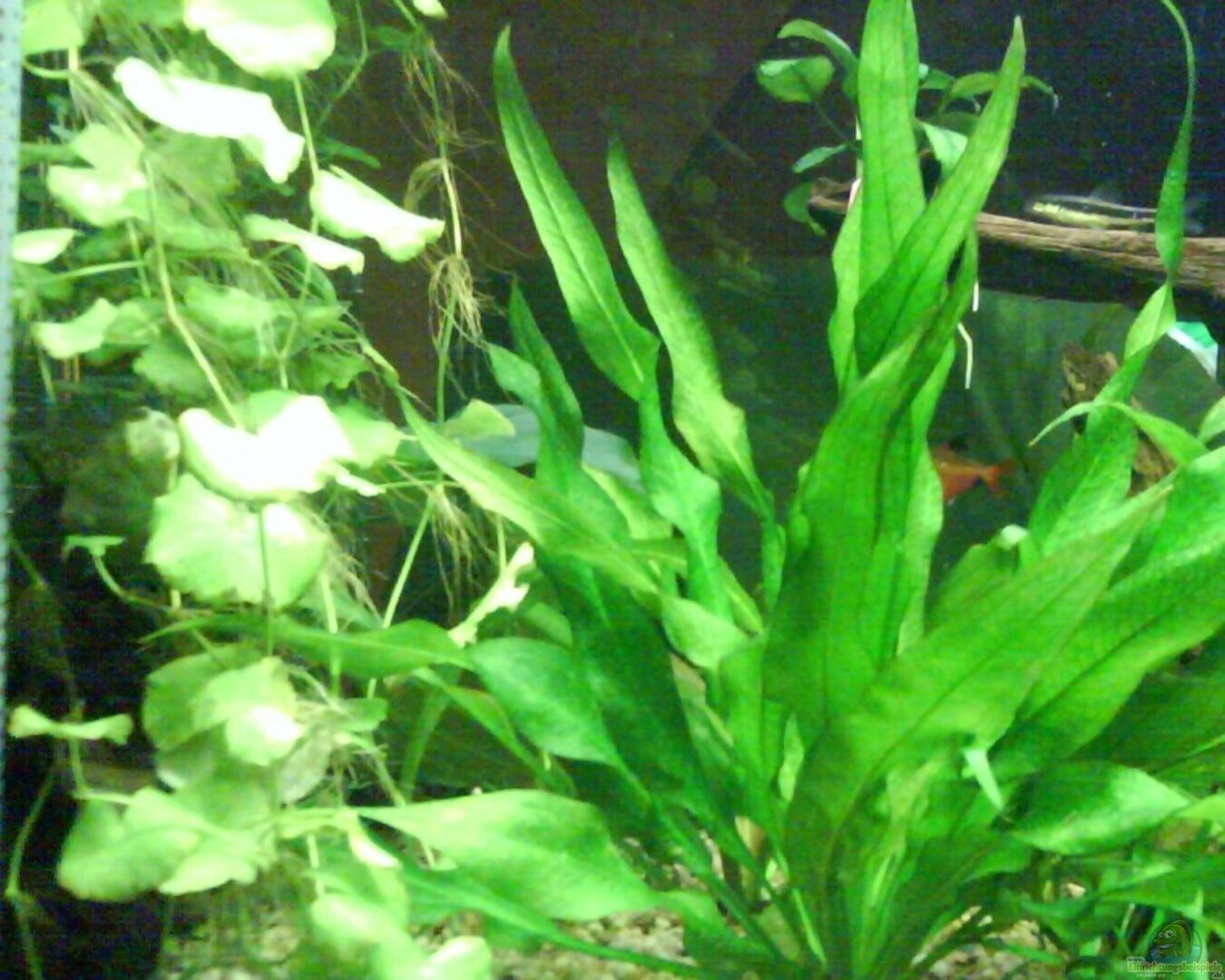 3x Cryptocoryne parva 3x Vallisneria 1x Aponogeton ulvaceus 1x Echindorus magdalensis 1x Echinodorus ´Red Flame´ 1x Cinum natans 1x Anubia 1x Cryptocoryne petchii 1x Anabias barteri 1x Hydrocotyle leucocephala N 1x Alternanthera rosaefolia 1x Tiegerlotus und 2 andere Echindorusarten so wie ein paar andere Pflanzen wo ich leider die Namen nicht wei?? sind vom alten Becken (150l) ins neu eingesetzt wurden