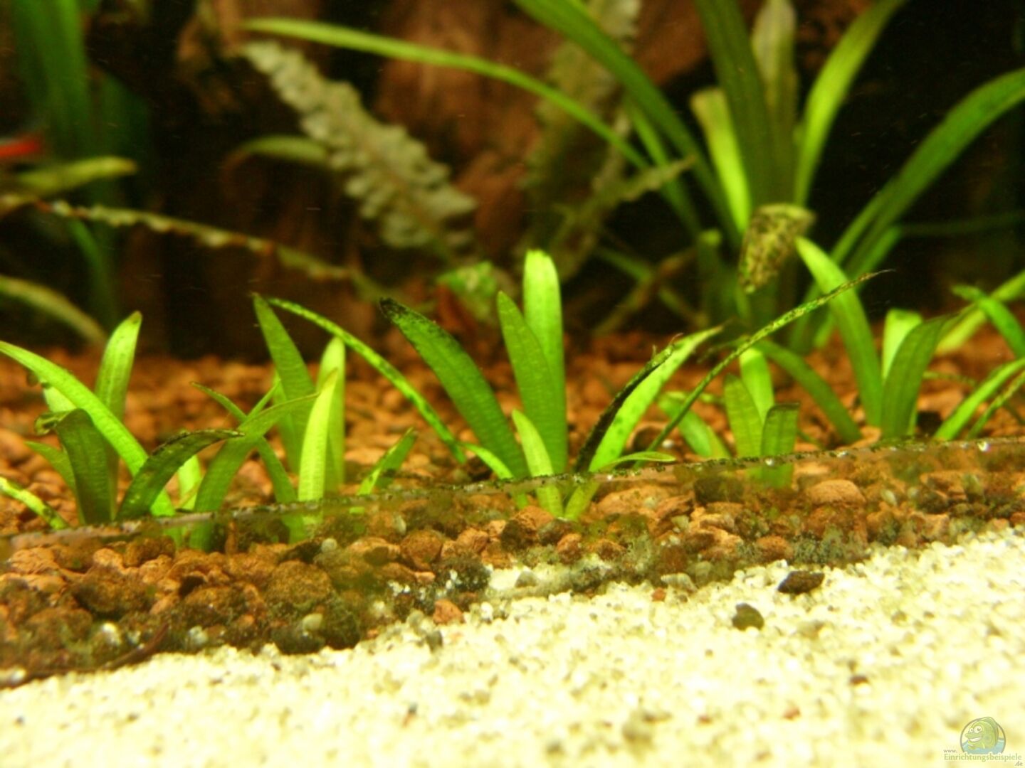 hinten rechts Vallisneria spiralis Leopard (sie wächst und wächst und......) bildet schöne Ableger, unzählige Cryptocoryne Ableger im linken und hinteren Beckenbereich als dichten Wald angelegt, drei Echinodorus bleheri vorne rechts vorm ??berlaufschacht, im mittleren Bereich drei Echinodorus-Zuchtformen deren genaue Bezeichnung ich nicht kenne, zwei kleine Anubias die aus einer sehr stark verkalkten Pflanze gerettet worden sind, an Wurzeln angebunden, in der Mitte des Beckens [...]