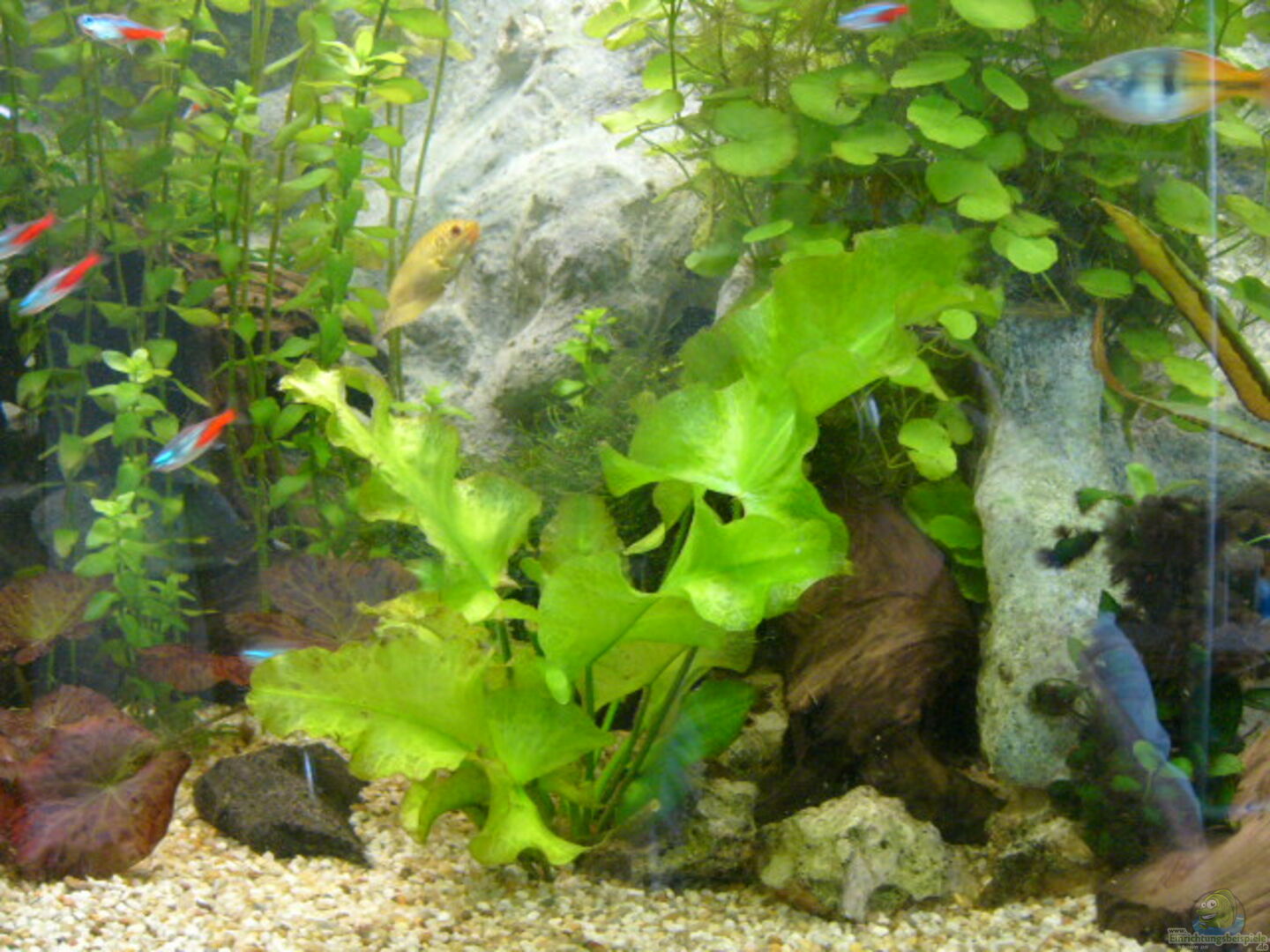 Alternanthera Reineckii rot, Anubias, Cabomba Caroliniana, Bacopa Caroliniana, Crinum Thaianum, Echinodorus Tropica, Cryptocoryne Indonesia, Egeria Densa, Hydrocotyle Leucocephala, Hygrophila Difformis, Ludwigia Respens, Mayaca Fluviatilis, miccrosorum Pteropus, Nuphar Japonica, Nymphaea Lotus/ Rubra, Rotala Rotundifolia/ Macrandra, Vesilcularia Dubyana aufgebunden . Wöchentliche zugabe JBL Ferropol