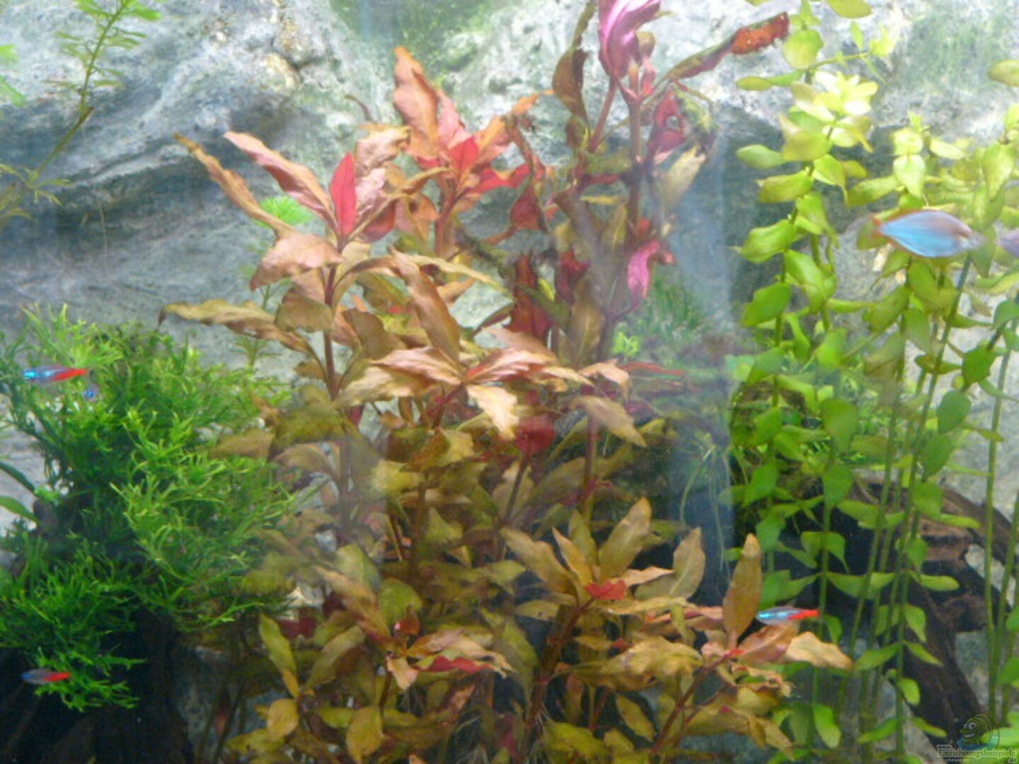 Alternanthera Reineckii rot, Anubias, Cabomba Caroliniana, Bacopa Caroliniana, Crinum Thaianum, Echinodorus Tropica, Cryptocoryne Indonesia, Egeria Densa, Hydrocotyle Leucocephala, Hygrophila Difformis, Ludwigia Respens, Mayaca Fluviatilis, miccrosorum Pteropus, Nuphar Japonica, Nymphaea Lotus/ Rubra, Rotala Rotundifolia/ Macrandra, Vesilcularia Dubyana aufgebunden . Wöchentliche zugabe JBL Ferropol