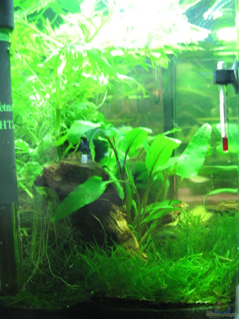 Wepping Moos(Vesicularia ferrirei) Feinblättriger Sumatrafarn(Ceratopteris thalictroides) Mooskugeln (Cladophora aegagrophila) Zwergwasserkelch (Cryptocoryne Parva) Und eine Unbekannte aussen rechts.