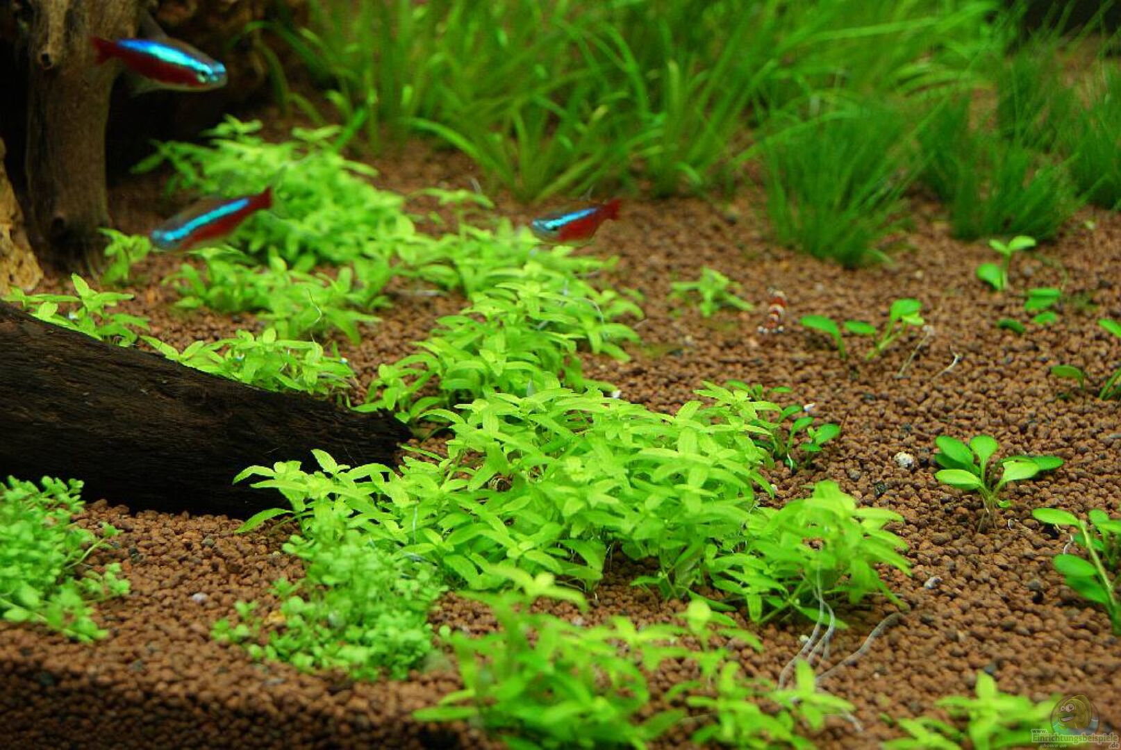 Blyxa japonica Hydrocotyle verticillata Micranthemum umbrossum Hemianthus micranthemoides Hygrophila pinnatifida Persicaria (Polygonum) spec. Hygrophila spec. Araguaia Hemianthus callitrichoides cuba Eleocharis parvula Eleocharis pussila Eleocharis vivipara Elatine triandra sowie Mosse: Weeping-Moos - Vesicularia ferriei Christmas-Moos - Vesicularia montagnei Mini-Pellia - Riccardia chamedryfolia verwendet.