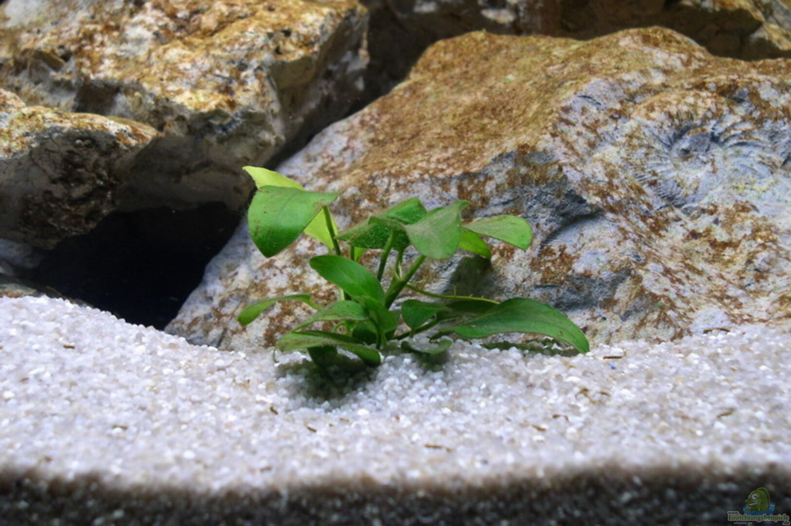 An Pflanzen wurden folgende robuste Arten eingepflanzt... - 2 Anubias nana, - 3 Microsorum pteropus, - 3 Crinum thaianum, - 1 Anubias barteri, - 1 Anubias congensis