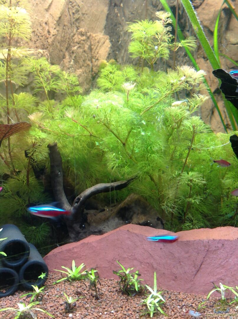 Cryptocoryne undulata, Gewellter Wasserkelch Nymphaea lotus 'rot' Nymphas lotus var. viridis Vallisneria spiralis - Glatte Vallisnerie Limnophila sessiliflora - Blütenstielloser Sumpffreund Heteranthera zosterifolia, Seegrasblättriges Trugkölbchen Egeria densa - Dunkelgrüne Wasserpest Monosolenium tenerum, Zartes Lebermoos undDüngung: Dennerle S7 VitalMix (alle 7 Tage) E15 FerActive (alle 4 Wochen) V30 Complete (alle 4 Wochen)