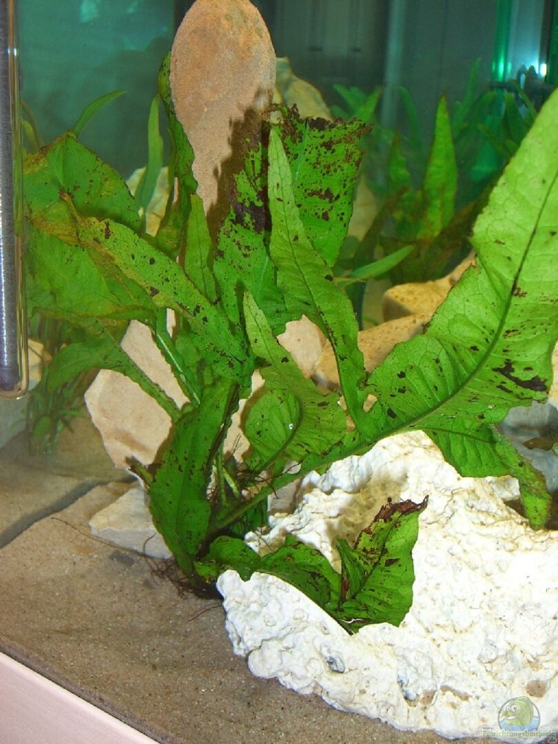 Anubias barteri ´ Breitblättriges Speerblatt ´ 2 mal Anubias afzelii ´ Schmalblättrige, kleine Anubias ( bin mir nicht sicher) 2 mal Microsorium pteropus ´ Javafarn ´ ( bin mir auch nicht sicher) rechts vorne hab ich keine Ahnung mehr.Biite um Hilfe
