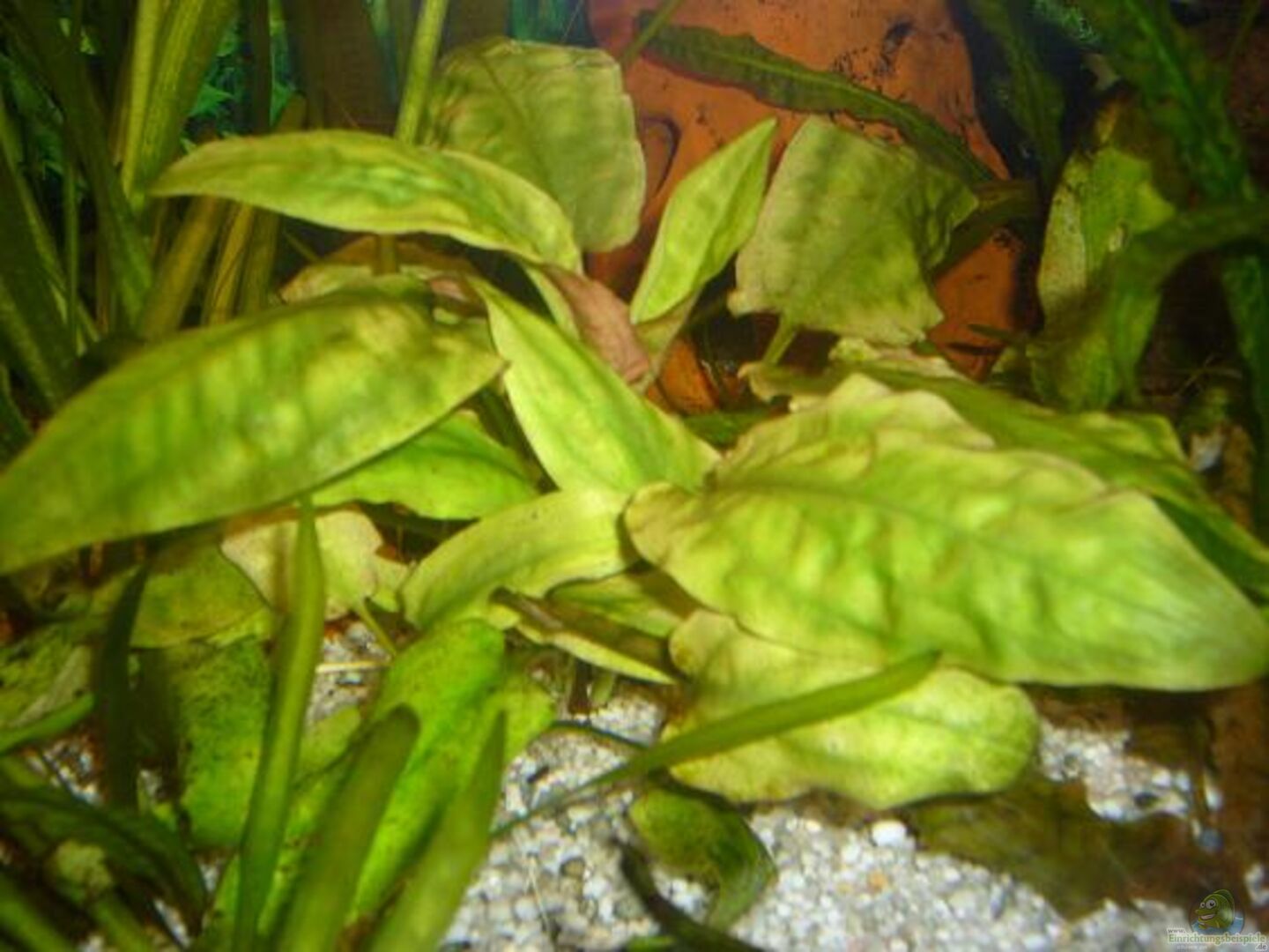 - Vallisneria spiralis (Glattblättrige Vallisnerie) - Cladophoraaegagrophila (Mooskugel) - Wasserkelch - Nymphaea lotus var.rubra (Roter Tigerlotus) - Echinodorus osiris (Rötliche Amazonasschwertpflanze) - Riesenvallisnerie - Anubias