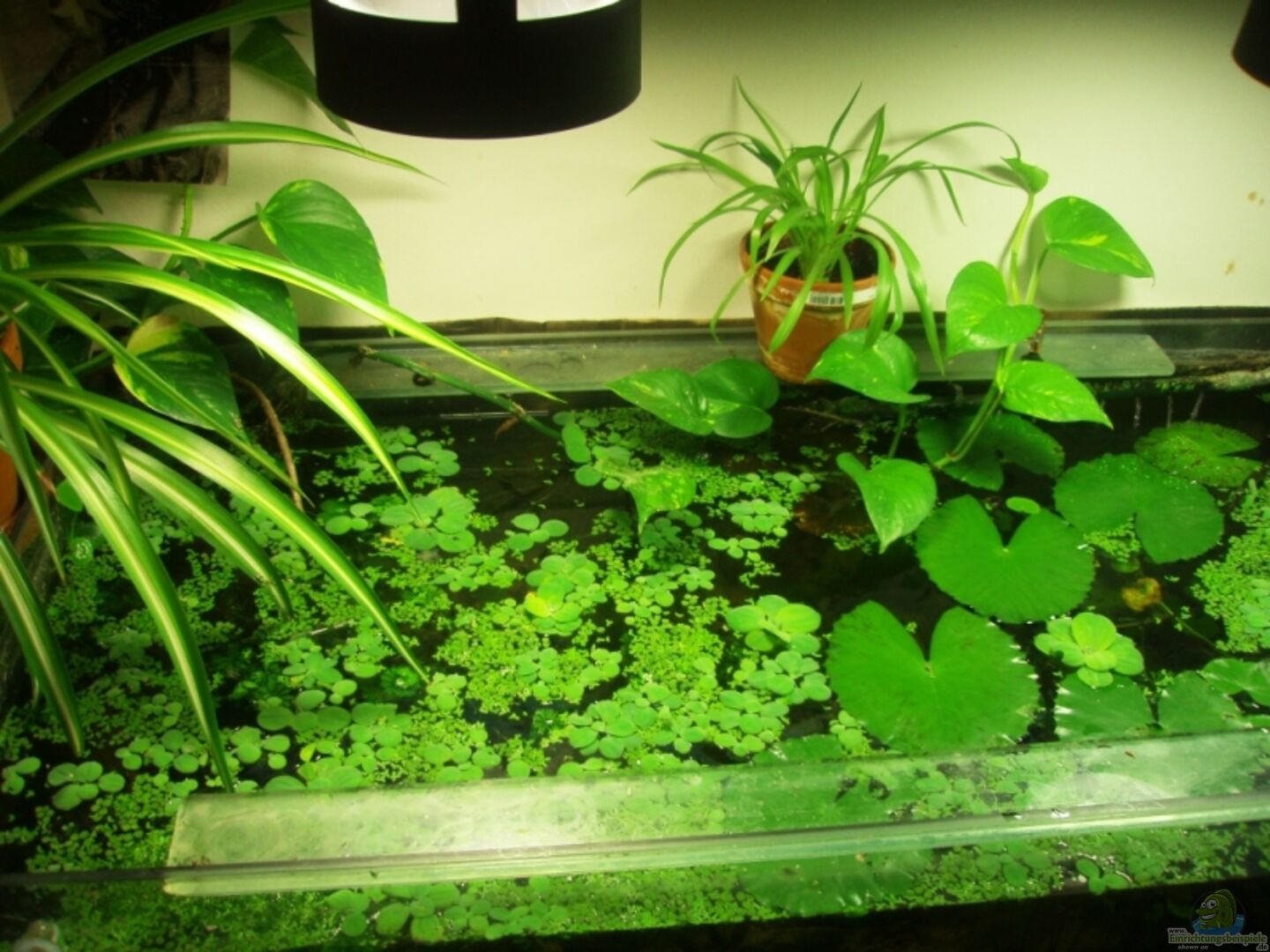 Anubias hastifolia, Anubias barteri var. ´nana´, Amminia gracilis, Nymphea sp., Valisneria spiralis, Aponogeton sp. Pistia sp., Wasserlinsen