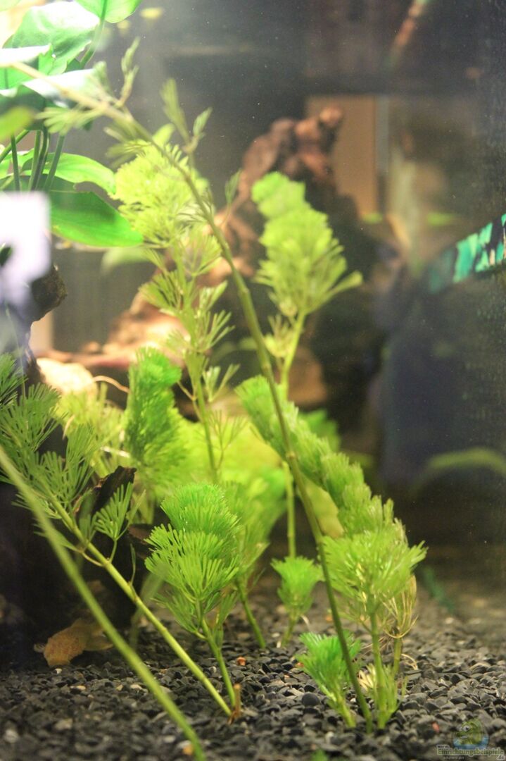 1 Javamoos auf einer Holzwurzel (hat aber noch Wachstumspotenzial :-) ) 1 Wasserkelch 3 Kardinalslobelien 9 Haarnixen Wasserlinsen als Schwimmpflanzen für ein interessantes Licht-Schattenspiel 1 Anubias auf Holzwurzel 4 Muschelblumen 5 indischer Sumpffreund Die Anubias habe ich mit einem Stofffaden and ein Wurzelholz angebunden und sie hat mittlerweile auch gute Wurzeln entlang des Holzes gebildet. Der Wasserkelch will nicht recht, die Blätter sind teilweise bräunlich gefärbt, [...]