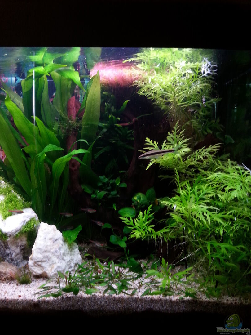 Anubias Barteri Echinodorus Bleheri Hemianthus Callitrichoides Bolbitus Heudelotii Riccia Fluitans Rotala Wallichii Taxiphyllum Barbieri Hygrophila corymbosa Microsorum Pteropus Düngung: täglich Aqua Rebell -Makro Basic Estimative Index -Makro Basic - Nitrat -Mikro Basic - Eisenvolldünger