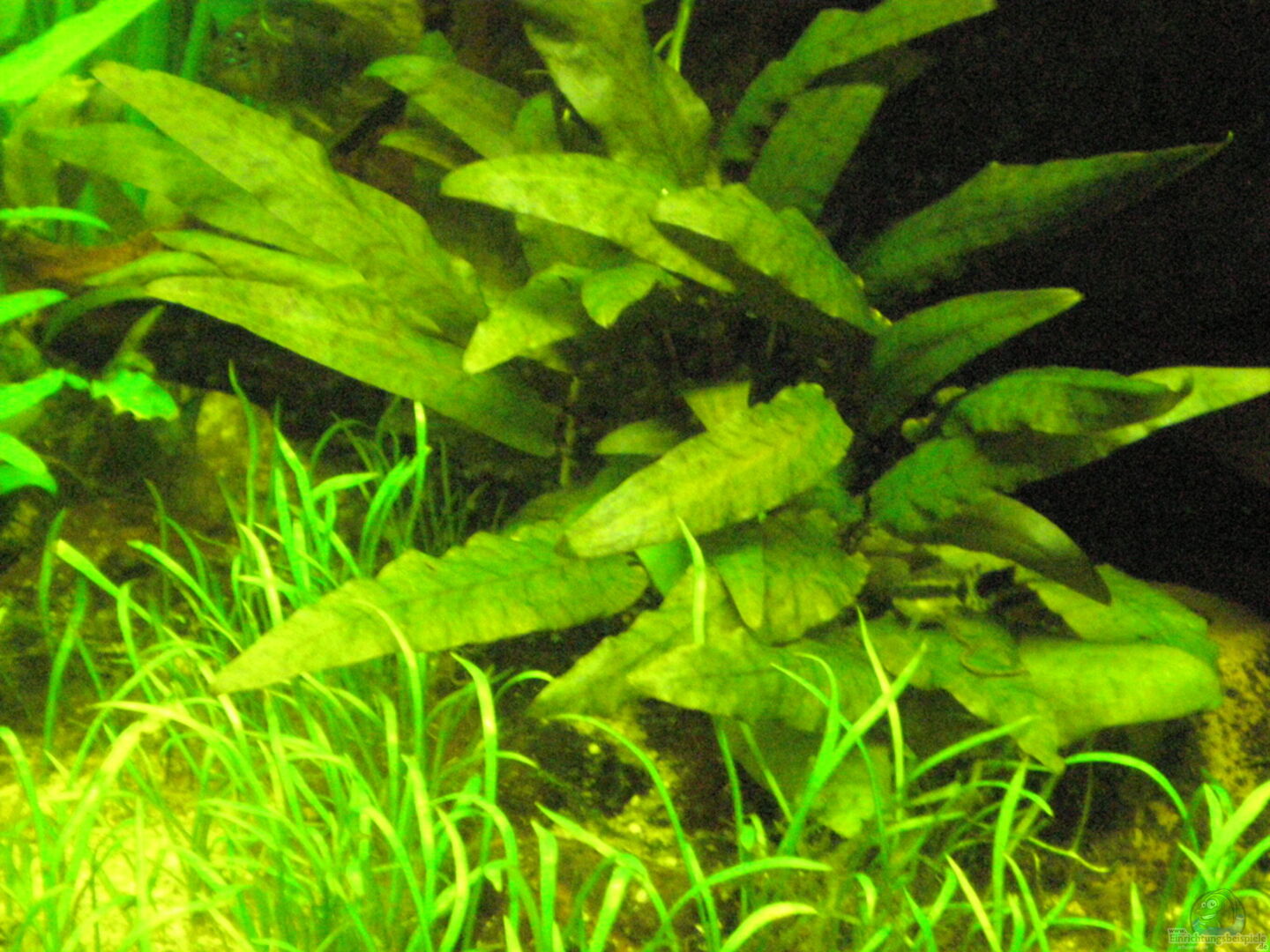 Aufgebunden: Anubia nana Anubia barteri Microsorum pteropus Im Bodengrund: Cryptocoryne wendtii Cryptocoryne aponogetifolia Nymphea lotus Vallisneria gigantea Lilaeopsis brasiliensis au??erdem einige Mooskugeln und anderes Moos, von dem ich den Namen leider nicht mehr wei??. gedüngt wird mit Florena Volldünger von Sera und mit flüssigem Kohlenstoff-Dünger von Tetra ca alle 2 Wochen Au??erdem wird mit Düngekugeln von JBL gedüngt