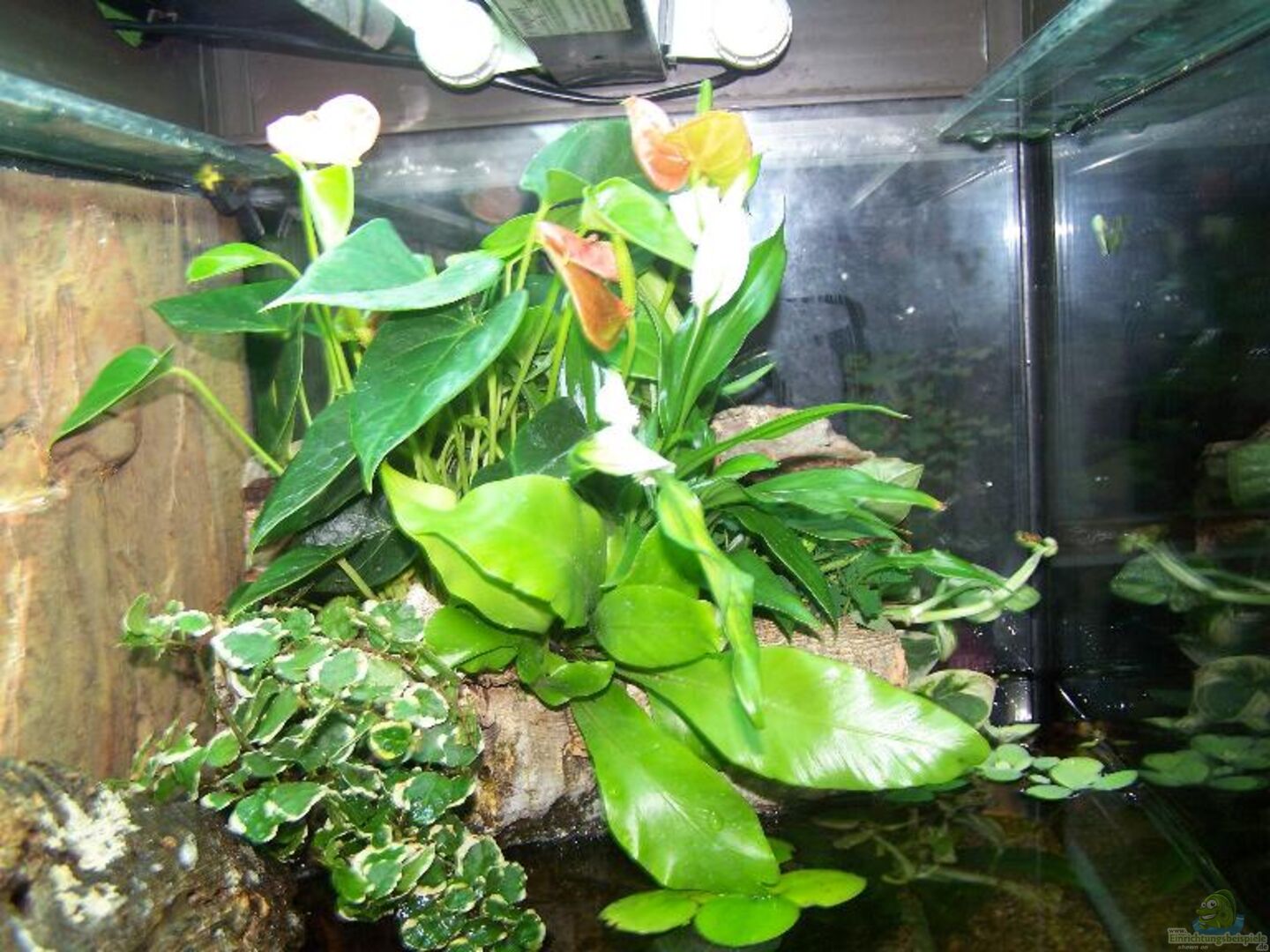 submers: Echinodorus `Ozelot` und bleheri Ceratophyllum demersum Teichquellmoos Moosbälle emers: Phalaenopsis Philodendron Asplenium nidus Ficus pumila Anthurium Spathiphyllum Mimose Moos Tillandsie Schwimmpflanzen: Pista stratiotes Limnobium laevigatum Salvinia natans