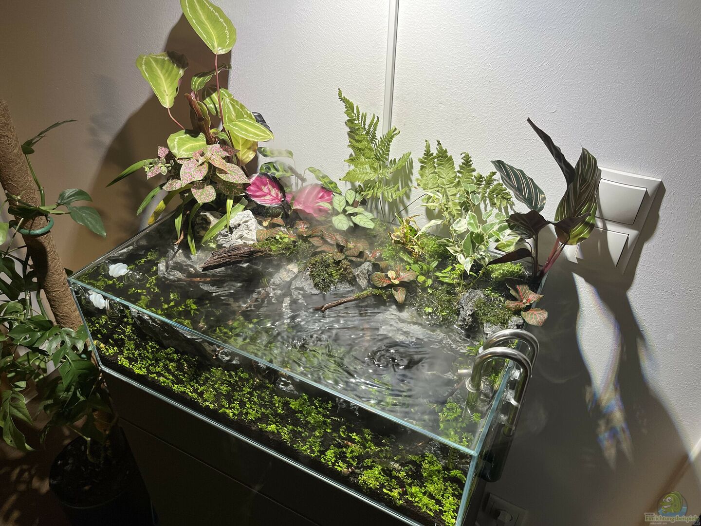 Ich bin gespannt, welche Pflanzen in dem dauerfeuchten Substrat gut zurecht kommen. Es ist ein kleines Experiment. Bisher scheint es allen Pflanzen jedoch ganz gut zu gehen. Dem Farn ist es wohl etwas zu hell, sodass ich diesen mehr am Rand, etwas schattiger platzieren werde. Emers: Buntnessel Begonia amphioxus Calathea lancifolia Calathea ornata Calathea Bicajoux Mamba Pink Calathea roseopicta "Rosy" Ficus spec. white Maranta L.Amabilis Mint Fittonia albivenis Pleurothallis [...]