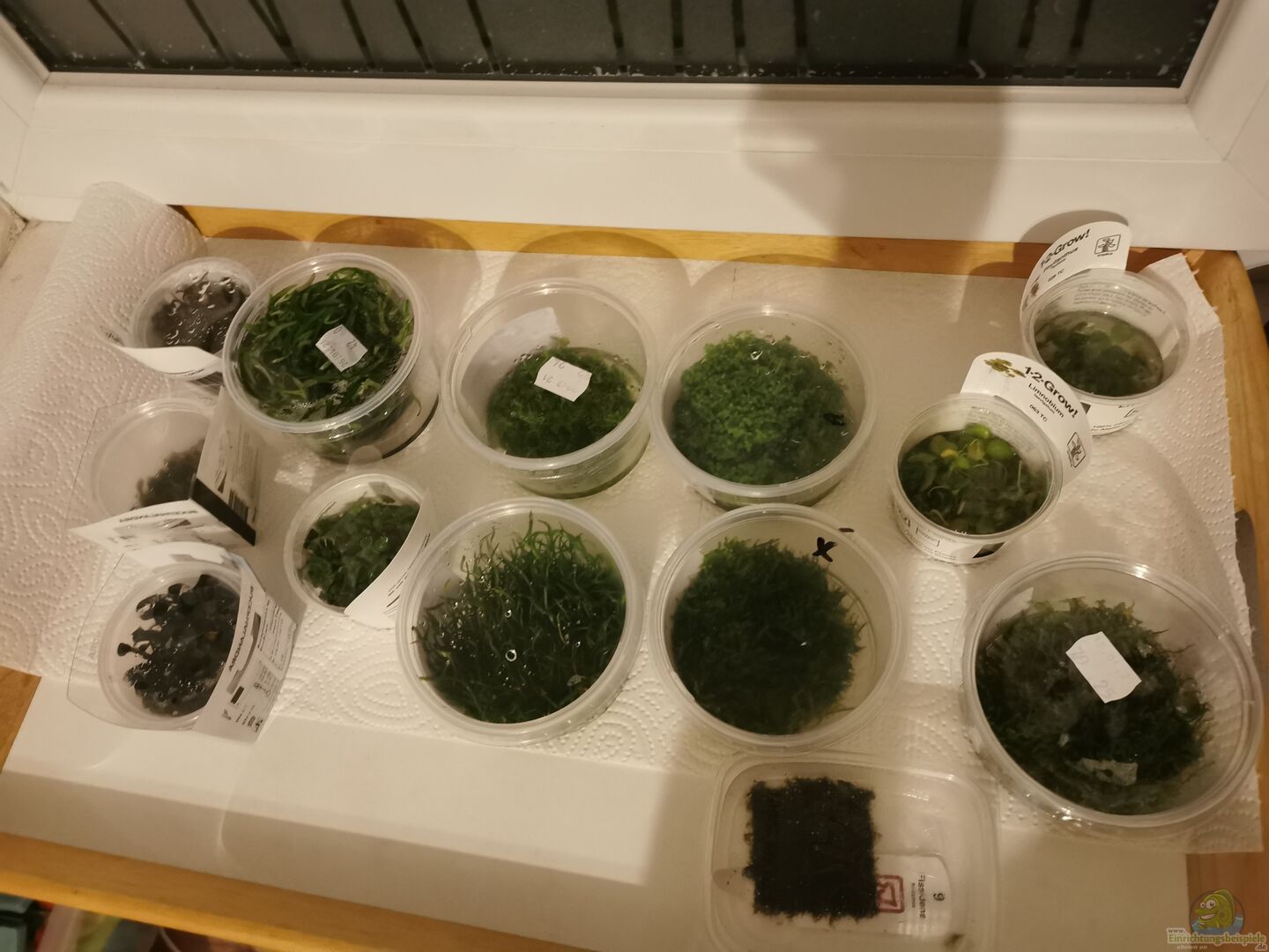 Schwimmpflanzen: Limnobium laevigatum Phyllanthus fluitans Links bei der Wurzel: Alternanthera reineckii 'Rosanervig??? Echinodorus 'Reni??? mittig bei der Wurzel: 2x Anubias barteri var. nana 'Pinto' oben an der Wurzel: Fissidens fontanus Vesicularia montagnei "Christmas Moss" Bucephalandra sp. Deep Purple Hygrophila Pinnatifida hinter der Wurzel (links nach rechts): Cabomba furcata Rotala rotundifolia 'Green??? Persicaria [...]