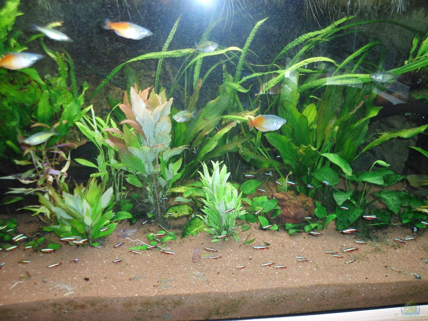 Vordergrund: Kleiner Wasserkelch - Cryptocoryne parva Zwerg-Speerblatt - Anubias barteri var. "nana" Mittelgrund: Wendts Wasserkelsch - Cryptocoryne wendtii Speerblatt - Anubias barteri Hintergrund: Indischer Wasserfreund - Hygrophila corymbosa Schwertpflanzen: Echinodoris ozelot Echinodorus bleheri Wasserkelch- Cryptocoryne balansae Wurzeln & Steine: Javafarn - Microsorum pteropus Javamoos - Vesicularia dubyana Schwimmpflanzen: Gemeiner [...]