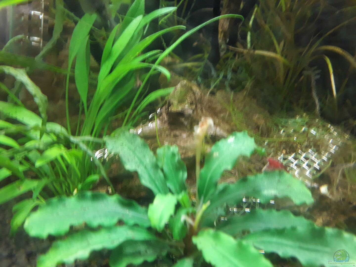 2x Bucephalandra spec. 2x Genoppter Wasserkelch (Cryptocoryne balansae) 4x Nadelsimse (Eleocharis acicularis) 1x Zierlicher Wasserkelch (Cryptocoryne lucens) 3x Kriechende Binse (Juncus repens) Triangelmoos (Cratoneuron filicinum) Die Düngung der Pflanzen erfolgt mit: DENNERLE NPK Booster, DENNERLE Nano Tagesdünger und DENNERLE Scapers´s Green.