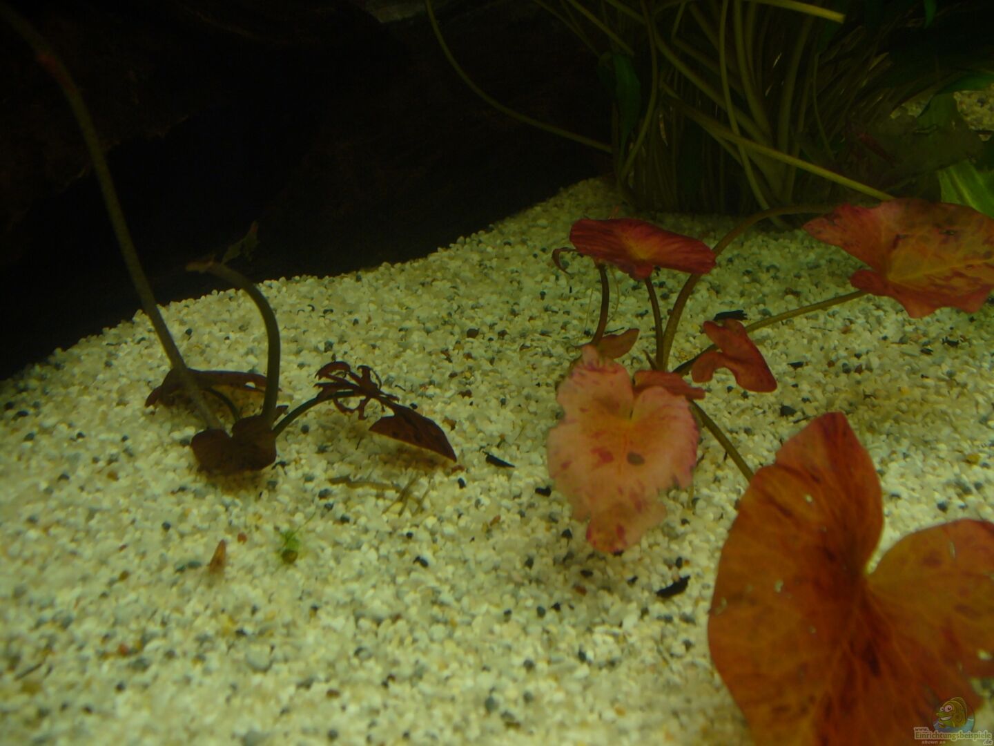 Die Pflanzen haben leider beim Umzug etwas gelitten. Deshalb sehen sie jetzt nicht gerade schön aus, aber ich denke das wird schon wieder wenn man ihnen etwas Zeit lässt. Echinodorus bleheri Nymphaea zenkeri Anubias barteri Vallisneria Cryptocoryne wendtii Microsorum pteropus Windelov Microsorum pteropus