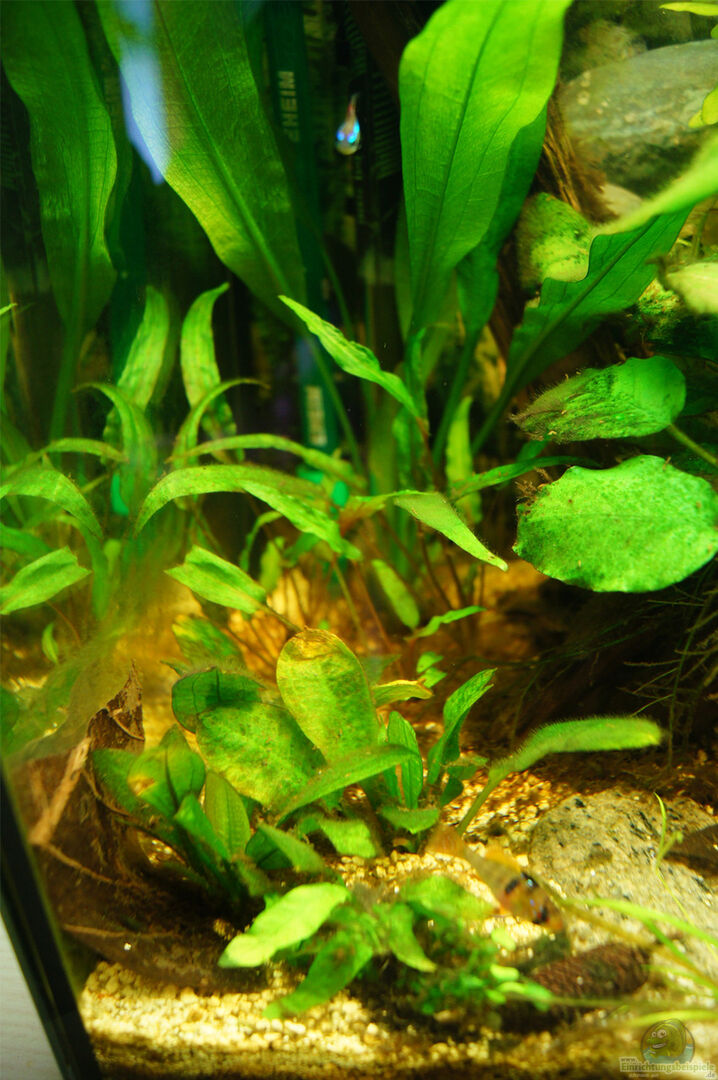 - Echinodorus bleheri (Breitblättrige Schwertpflanze) Hinten links und rechts -------- - Cryptocoryne wendtii green (grüner Wendtscher Wasserkelch) rechts im mittleren Bereich -------- - Anubias barteri var. nana (Zwergspeerblatt) (entfernt da sie zu gro?? wurde), kleinen Trieb behalten für spätere Zwecke (auf nen stein gebunden). -------- - Anubias barteri var. nana 'Petite' (Kleines Zwergspeerblatt) mittig auf der hinteren und da unter liegenden Wurzel gebunden, [...]