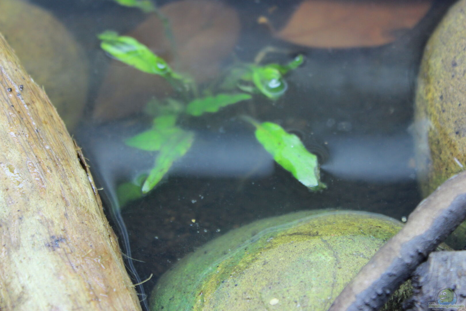 In the submerged part, acidophilic asiatic plants resistant to high temperatures and low light intensity Bucephalandra sp Cryptocoryne sp Vesicularia dubyana Microsorum pteropus Limnophila sessiliflora Floating: Salvinia natans & Lemna minor