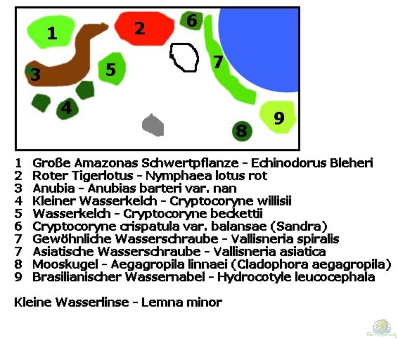 Gro??e Amazonas Schwertpflanze - Echinodorus Bleheri Roter Tigerlotus - Nymphaea lotus rot Anubia - Anubias barteri var. nan Kleiner Wasserkelch - Cryptocoryne willisii Wasserkelch - Cryptocoryne beckettii Cryptocoryne crispatula var. balansae (Sandra) Gewöhnliche Wasserschraube - Vallisneria spiralis Asiatische Wasserschraube - Vallisneria asiatica Mooskugel - Aegagropila linnaei (Cladophora aegagropila) Brasilianischer Wassernabel - Hydrocotyle leucocephala Kleine Wasserlinse [...]