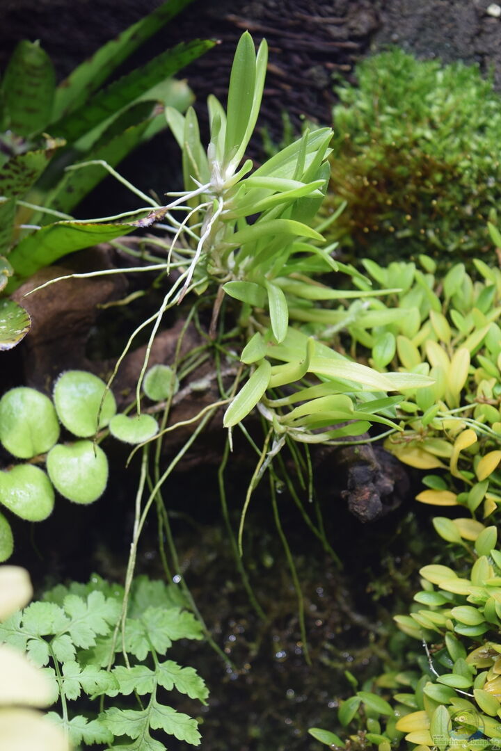 Ranker: Ficus villosa, Marcgravia umbellata, Philodendron hederaceum Surinam, Monstera acuminata Bodendecker: Biophytum sensitivum, Pyrrosia nummularifolia, Peperomia Santa Fe Panama, Pilea depressa, Anthurium scandens, Paradrynomaia spec. Surinam, Alsobia dianthiflora Epiphyten: Begonia herbacea, Neoregelia punktatissima, Microgramma reptans, Gomesa radicans, Pleurothalis montipelladensis, Stelis spec., Peperomia spec., Restrepia trichoglossa, Pleurothalis lateritia, Barbosella [...]