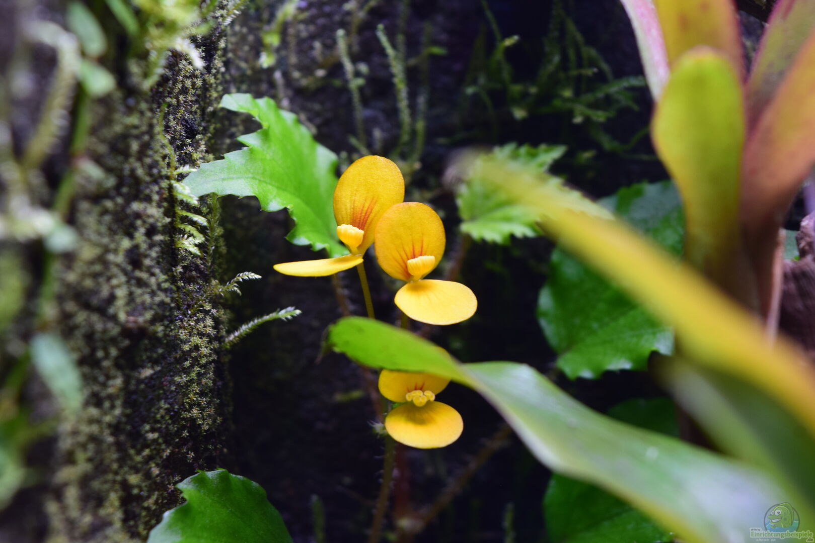 Pilea depressa, Begonia prismatocarpa, Marcgravia umbellata, Sphagnum Moos, Ficus spec. Borneo, Neoregelia ssp.....Bis auf die Bromelie hab ich in diesem kleinen Becken nur Stecklinge verwendet, um es natürlich einwachsen zu wachsen.