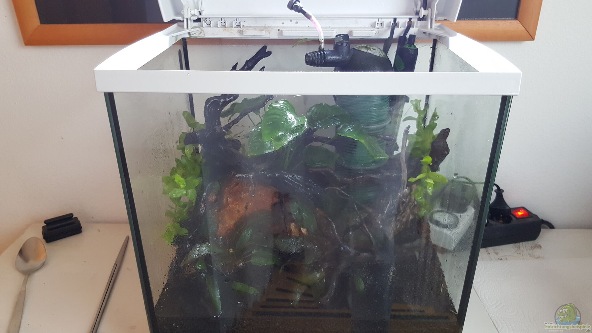 Hier findest du alle wichtigen Informationen zur Pflege und Beispiele für die Einrichtung deines Aquariums mit Bucephalandra Rainbow Marble.