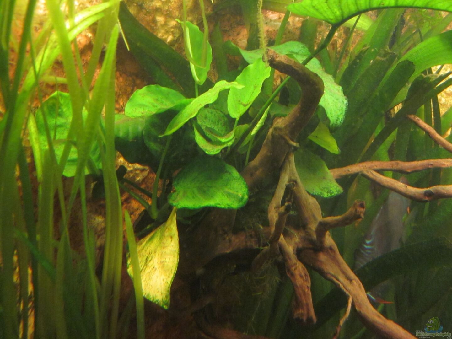 Vordergrund: - 2 x Nymphaea lotus - 2 x Alternantera Alternanthera reineckii - 2 x Teichlebermoos (befestigt auf Tonhöhle und Stein) - 1 x Cryptocoryne spiralis - 1 x Egeria densa - 3 x Eleocharis Parvula - 1 x Hydrocotyle leucocephala Mitte: - 2 x Cabomba caroliniana var. caroliniana - 7 x Vallisneria americana - 1 x Echinodorus Ozelot - Hintergrund: - 2 x Anubias barteri var. barteri - 4 x Valisnera Gigantea - 4 x diverse Echinodorus Arten (Zuordnung schwer [...]