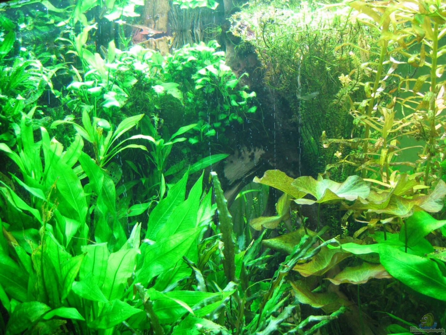 Derzeit im Becken sind: Vordergrund - Sagittaria subulata als Bodenrasen - Perlkraut - helles Kraut mit unbekanntem Namen Mitte bis hinten - Cryptocorynen kl. und mittlere Unterart - Echinodoren mehrere Unterarten bis hinten - Rosalla (rot) - Ludwiglie (rot) - Lotus (rot) - Tausendblatt - 2-3 unbekannte Arten Hinten - kleine Valisnerien, Wasserhyazinthe - Kirschblatt - indischer Wasserstern Seite/ Filterabdeckung - Javafarn, -moos - Anubias in den Wurzeln [...]