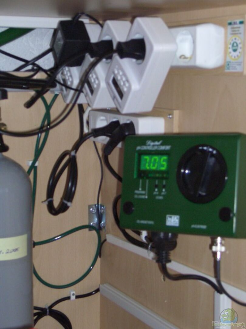 Jäger Heizstab 300 W Dennerle Co2 Controller 2Kg Co2 Vorratsflasche 3 Zeitschaltuhren MP Aquarienabdeckung mit 4x58 Watt Digitales Thermometer Ionenaustauscher 15 Lieter Im Nebenzimmer befindet sich eine kleine Zuchtanlage 1-60 l Becken und ein 240 l Becken