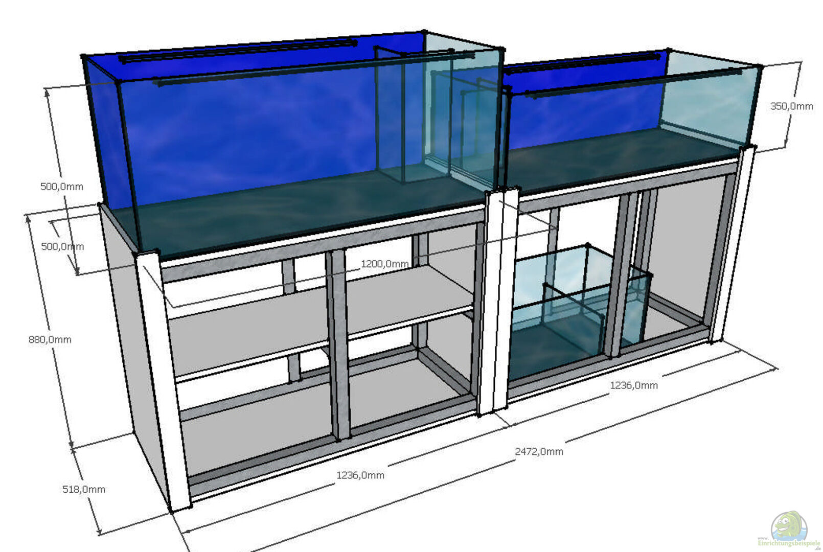 Aquarium 120x50x35 cm mit Filterschacht inkl. 3 Bohrung Technikbecken 75x40x35 cm