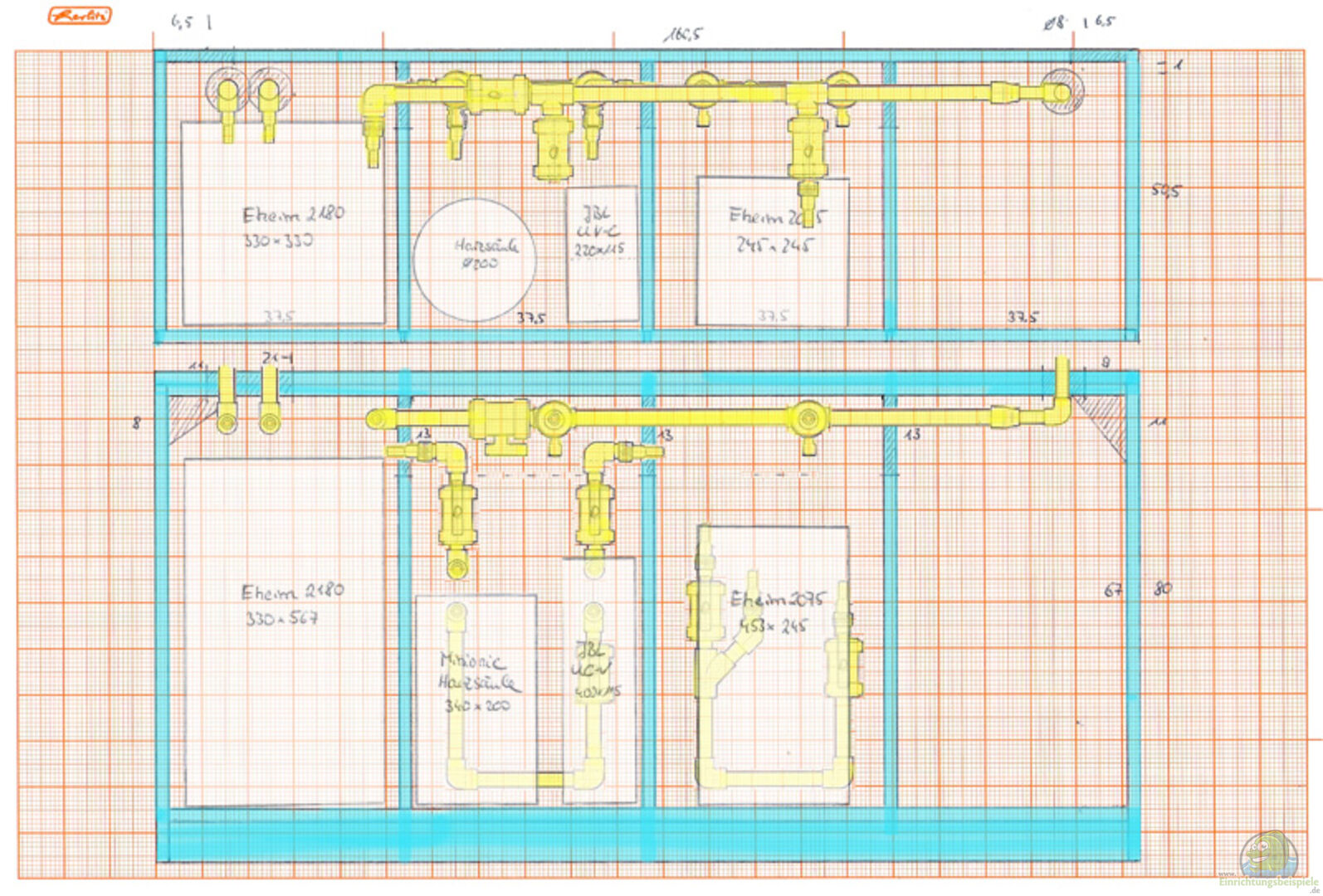 - UV KlärerJBL Aqua Cristal II UV-C 18 Watt (per Bypass in den Filterauslauf vom Eheim 2075 eingebunden) - Nirat-/Phosphataustauschersäule 5l von Minionic (ebenfalls per Bypass eingebunden; hinter dem UV-C; verschraubbar mit Entlüftung) - Regelheizer mit 500 Watt (integriert im Eheim 2180)