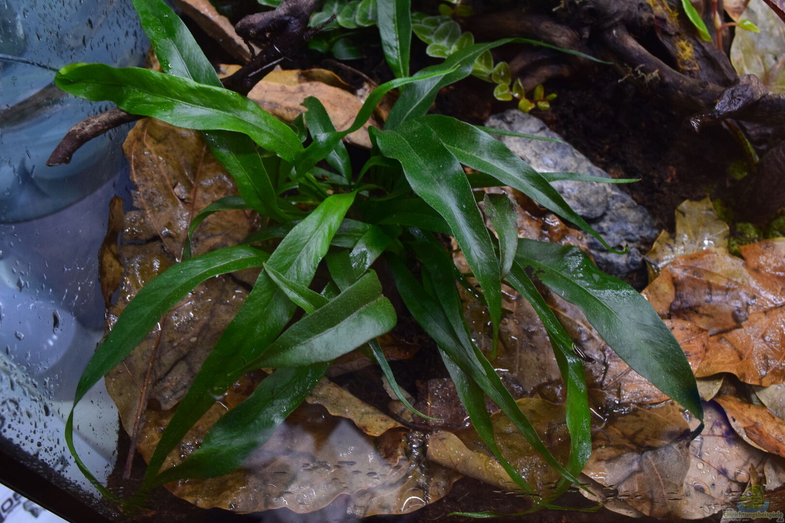 Neoregelia Akeso, Neoregelia ampullaceae purpurea, Begonia schulzei, Begonia prismatocarpa, Polypodium formosanum, Pleopeltis macrocarpa, Marcgravia umbellata, Philodendron hederaceum (Naturform Surinam), Anthurium scandens, Ficus spec. Peru (Stecklinge), Paradrynomaia spec. Surinam, Pilea depressa (Stecklinge), Pleurothalis rubella, Pleurothalis grobyi