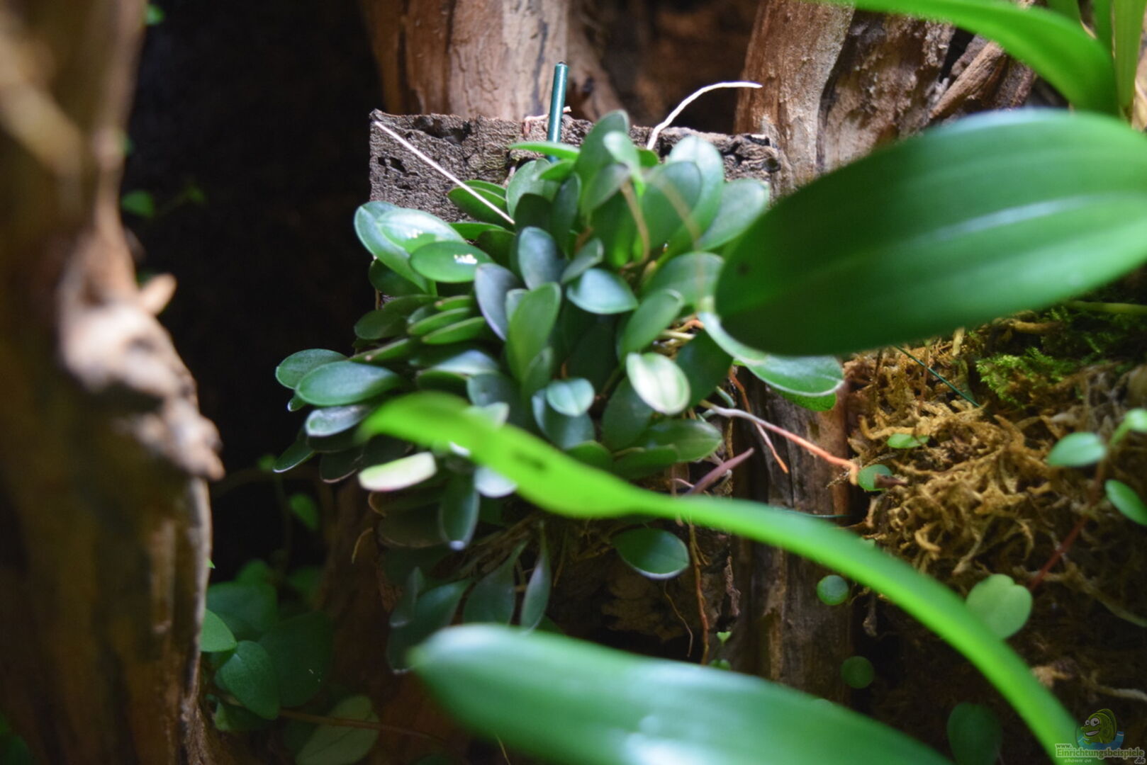 Die Pflanzen stammen überwiegend aus Südamerika (Peru, Kolumbien). Die Orchideen und Bromelien sind auf chilenisches Spaghnum-Moos aufgebunden. Klingt komisch, ist aber so. ;) Zum Aufbinden verwende ich mittlerweile OrchiFlexx von Röllke Orchideen. Wer wissen will, was was ist, einfach die Bildunterschriften lesen.